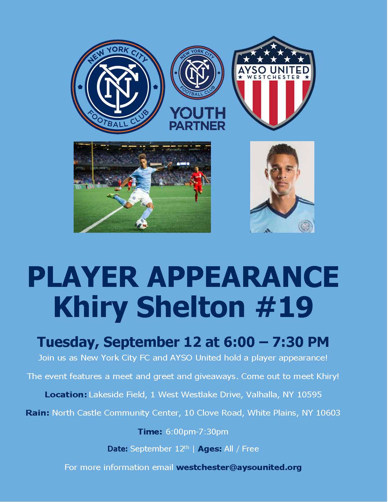 AYSO United players and families got to meet their favorite New York City FC player - Khiry Shelton! Thank you Khiry for taking the time to mentor our young players!
